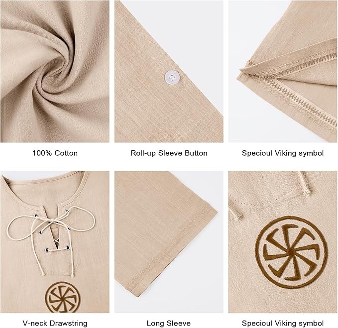 • Features:Fashion linen shirts,long sleeve, soft premium cotton, unique ethnic style pattern design, simple style,lightweight, drawstring collar design,solid color,loose fit.